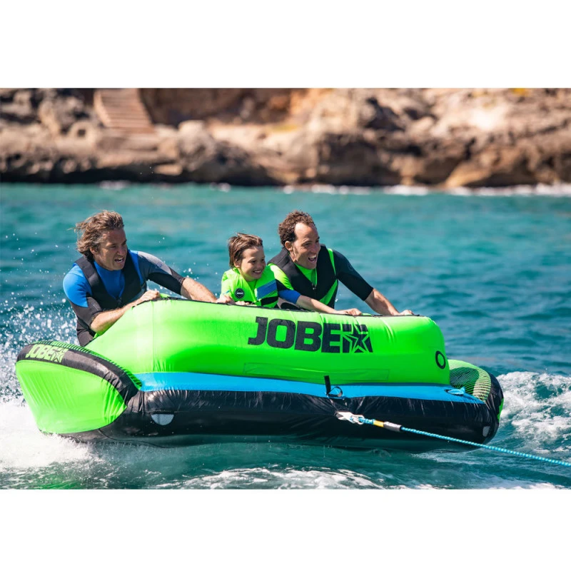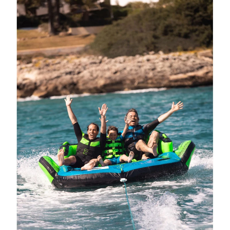 Approfitta subito della boa di trazione lunare di Jobe! Perfetto per le uscite con la famiglia o gli amici, il Lunar ha una capacità di 3 persone. Per mantenerti nella migliore posizione possibile durante la trazione, quest’ultima è dotata di 10 maniglie di presa in neoprene ultra confortevole. Sulle ali laterali troverai 2 maniglie che ne faciliteranno il trasporto. Per migliorare la stabilità e il comfort, il Lunar include imbottiture antiscivolo in neoprene sotto ogni sedile. La sua risorsa? Questa boa può essere trainata in entrambe le direzioni. Pertanto, potresti ritrovarti seduto o in ginocchio.