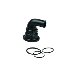 Bocchettone a gomito a 90° per serbatoi Ercole e Sogliola , per rimpiazzare il tappo d’entrata del serbatoio in caso di montaggio con raccordo a un tappo di riempimento.