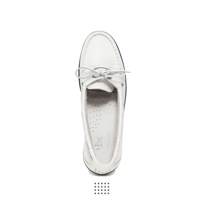Mocassino da donna in cuoio non foderato, suola concava in gomma con cucitura laterale. Tomaia cucita a mano. Un classico delle collezioni TBS. Fabbricazione Europea.