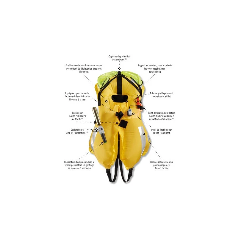 - Opzionale: Luce Flash e cappuccio spray approvati da Solas (quando il gilet viene colpito)