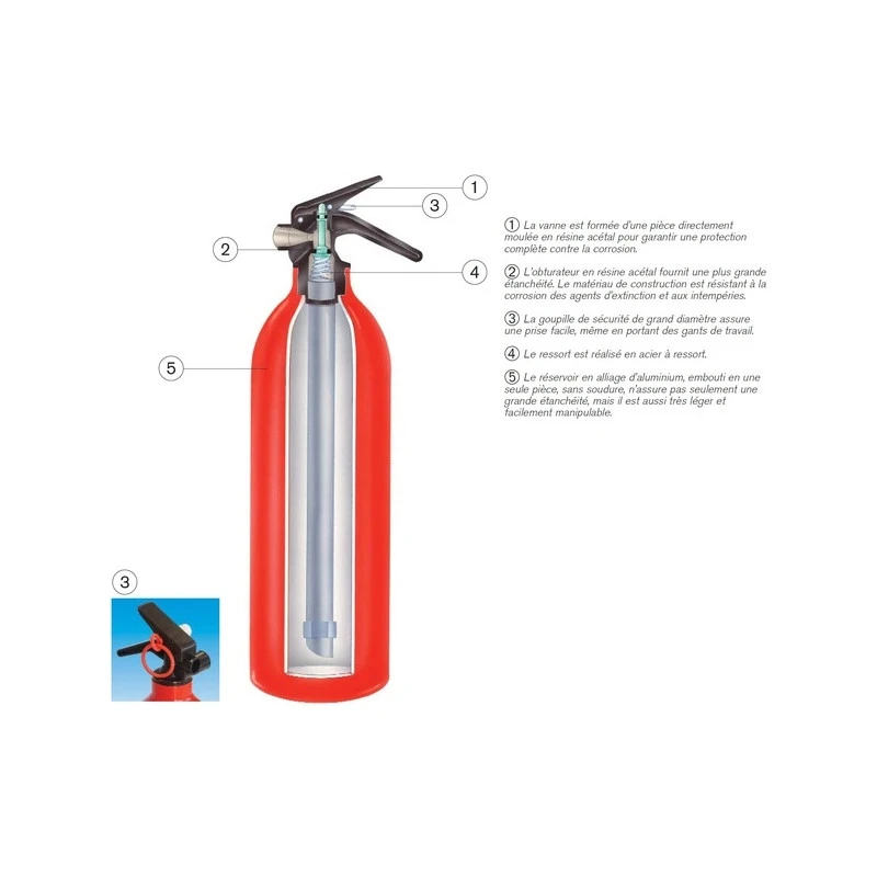 Estintore a polvere della capacità di 1 kg, pressurizzato, senza manometro, per fuochi di tipo A, B e C, permette di spegnere tutti i principi d’incendio eccetto i fuochi di classe D (metallo).