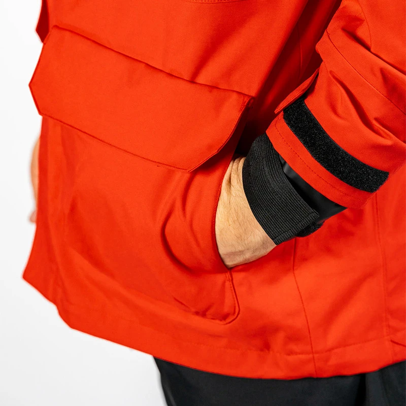 La giacca modello Coastal OrangeMarine per navigazione costiera, è il compagno ideale per i diportisti che cercano una protezione affidabile e un comfort ottimale quando sono in mare. Realizzata in nylon con rivestimento poliuretanico Milky Coating, offre un’eccellente impermeabilità di 10.000 mm e una traspirabilità di 10.000 MVTR, mantenendoti asciutto e comodo anche in condizioni difficili. Il robusto tessuto da 250 g/m² ne garantisce la durata nel tempo, mentre il design moderno è disponibile in nero o rosso con cappuccio giallo fluorescente per una massima visibilità .