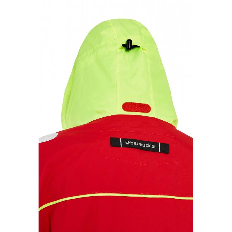 Per migliorare la visibilità in caso di maltempo o durante la navigazione notturna, sono state integrate nella giacca tre strisce riflettenti, posizionate sulle spalle e sul petto.