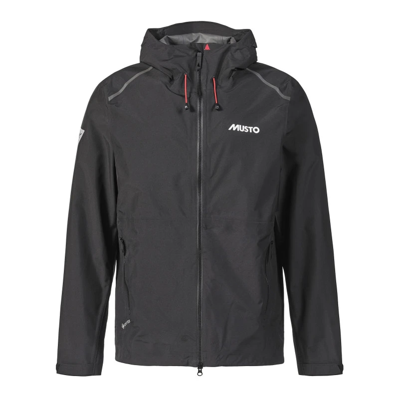 La giacca nera Gore-tex LPX GTX Infinium Aero è stata progettata per le gare costiere di tutto il giorno.