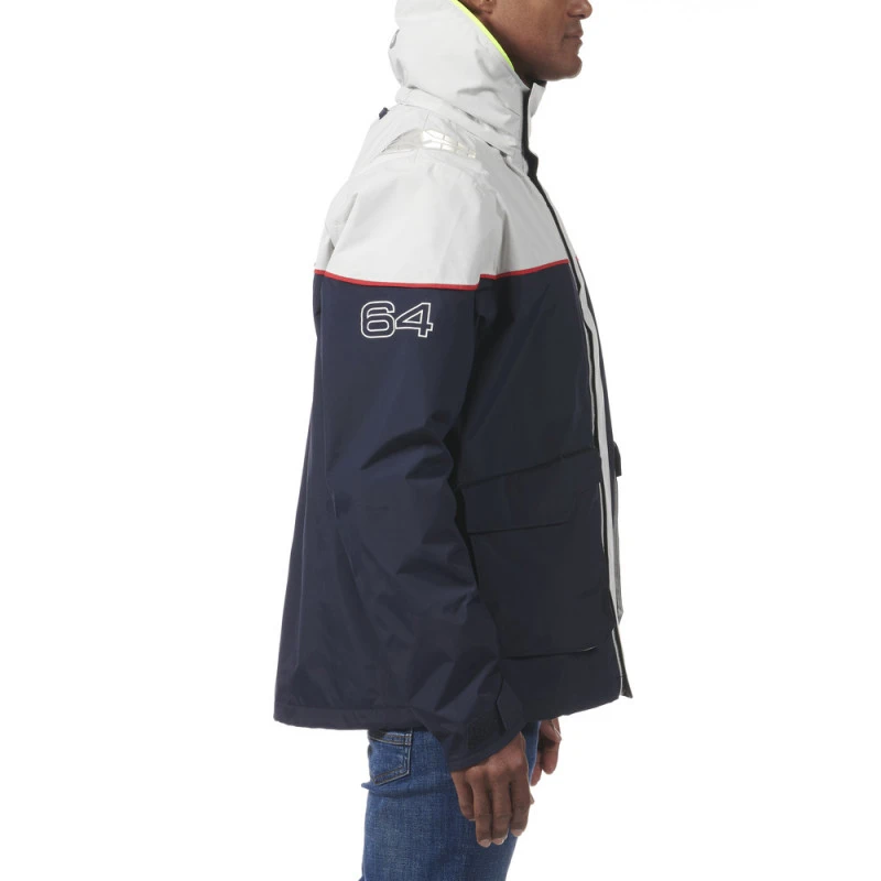 La giacca costiera 64 Channel blu navy/platino di Musto ti terrà all’asciutto sia in coperta che in mare vicino alla costa. Caratterizzata da un collo alto e da riflettori fotoluminescenti, questa giacca è dotata anche di un cappuccio a scomparsa ad alta visibilità. Vera e propria giacca a vento, questa giacca da vela è moderna e impermeabile. Realizzata con cuciture completamente nastrate, questa giacca ha due ampie tasche cargo inferiori e tasche scaldamani sul retro.