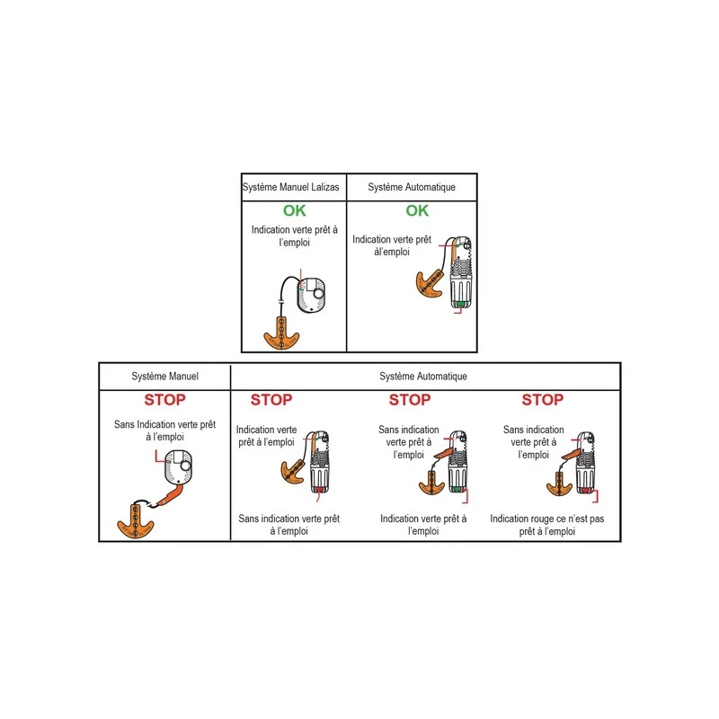 Quando sul meccanismo del giubbotto di salvataggio sono presenti tutti gli indicatori VERDI, non è necessario sostituire alcuna parte. Tuttavia, se sul meccanismo è presente un indicatore ROSSO , è necessario sostituire le parti appropriate.