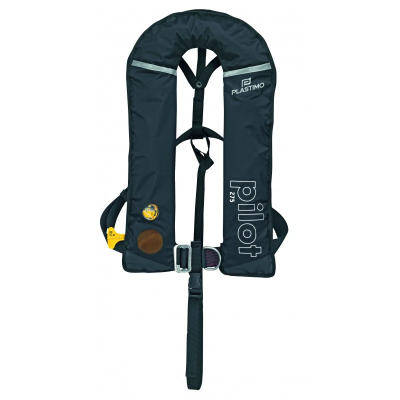 Giubbotto salvagente Pilot 275N con sistema di attivazione automatico, D-Ring e cinghia sottocosciale, del marchio Plastimo, nel colore nero