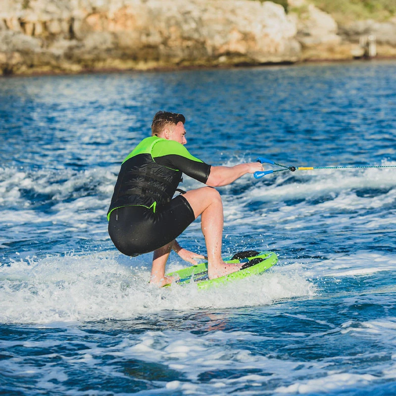 Dotata di una pratica tacca per il punto di trazione, la Chipper consente di agganciare facilmente la barra del timone, per partire senza sforzo dietro la barca. È come una boa da gioco acquatica che non manca mai di rallegrarci. Che preferiate sedervi, inginocchiarvi o andare a mani libere, il comodo rivestimento in EVA vi assicura la migliore presa possibile!