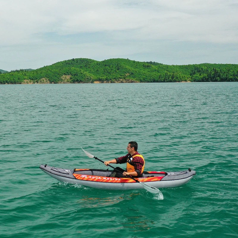 Il Memba 1 person kayak di Aqua Marina è un kayak molto versatile che vi permetterà di fare viaggi di media e lunga distanza. Il suo pavimento dropstitch ad alta pressione rinforzato con una copertura in nylon vi darà un eccellente scivolamento minimizzando i vostri sforzi! È adatto a persone fino a 110 kg.