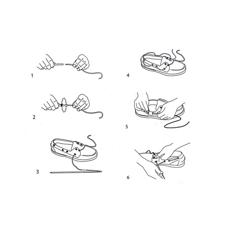 Questo kit contiene un paio di lacci in 100% pelle e un ago per lacci appositamente progettato per rinnovare le tue scarpe da barca.