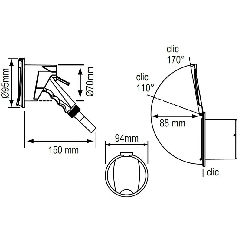 Apertura e chiusura pratica e sicura Nicchia chiusa: un « clic » assicura la chiusura effice della nicchia, evitando che la doccetta fuoriesca o che si incastri nell’elica. Quando è chiuso, la nicchia è impermeabile agli spruzzi e agli schizzi Nicchia aperta: delle leve mantegono la nicchia aperta La forma studiata del contenitore previene qualsiasi attivazione accidentale della leva.