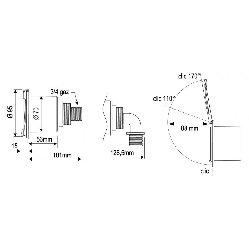 - Raccordo filettato maschio 3/4 per la connessione al sistema idrico di bordo