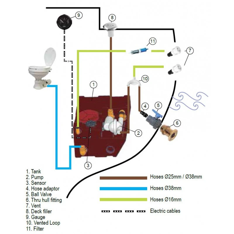 Questo serbatoio BLIZZARD può essere installato in fondo allo scafo per stoccare le acque utilizzate.