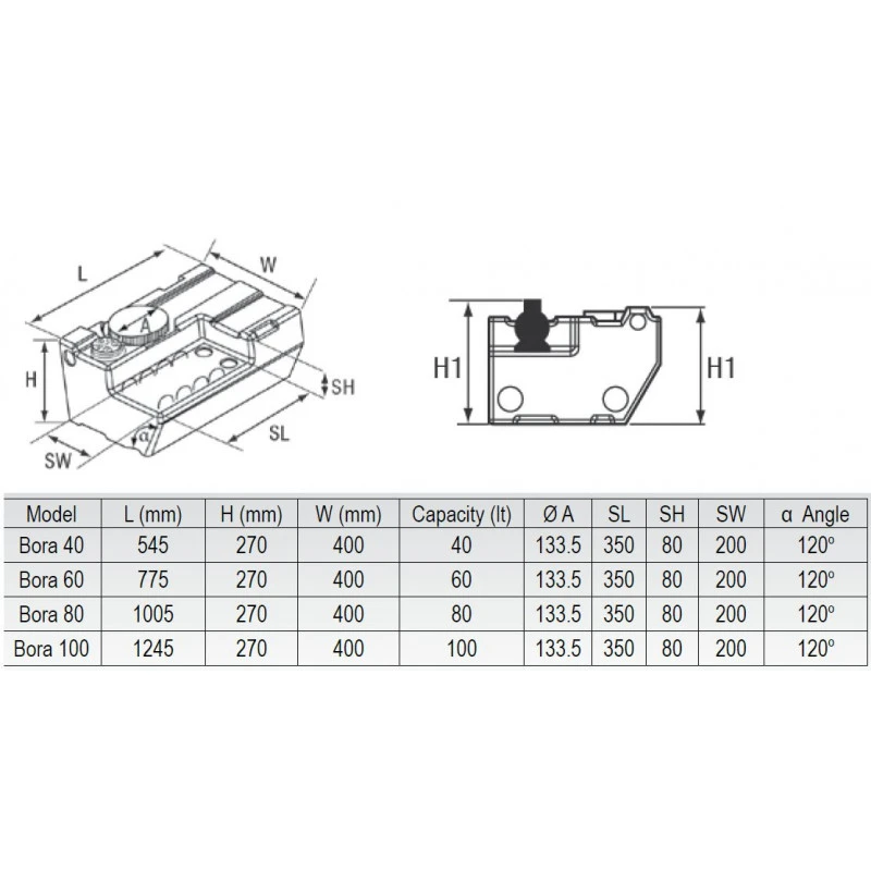 Serbatoio orizzontale dell’acqua dolce BORA Nuova Rade. é disponibile in quattro misure: 40 L, 60 L, 80 L et 100 L.