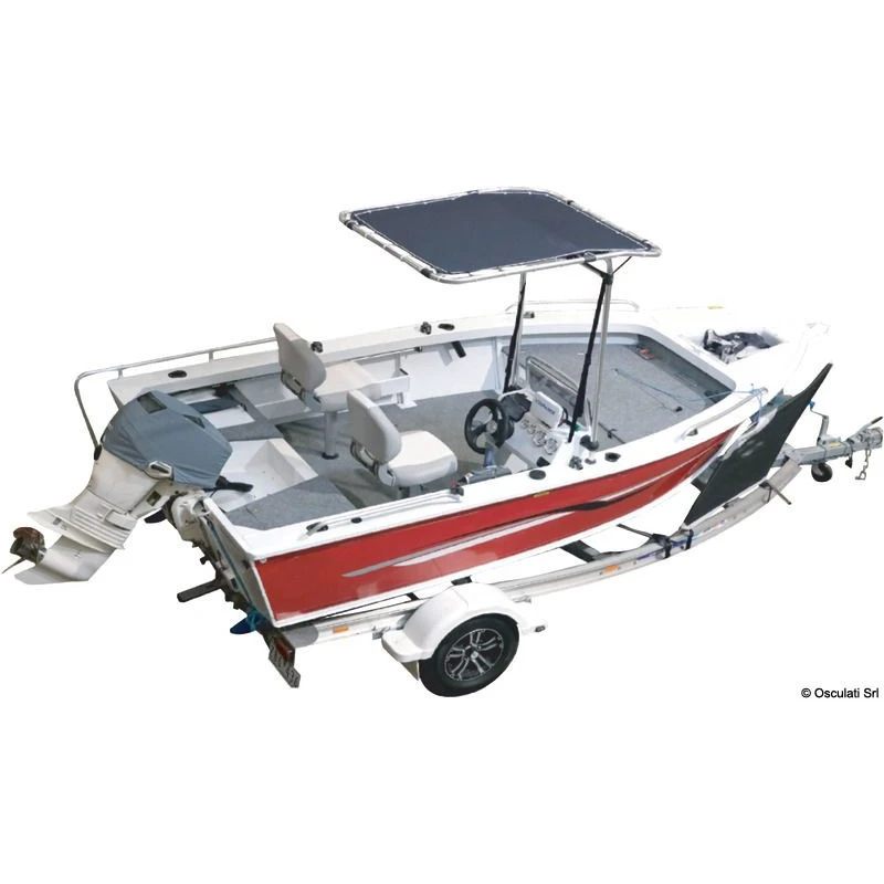 T-TOP in alluminio, ideale per proteggerti dal sole durante le tue gite in barca. Questo robusto t-top è dotato di un tubo in alluminio di 32 mm di diametro. Si installa direttamente sulla console o lateralmente su ciascun lato della console, o frontalmente alla parte anteriore della console (vedi foto). Si adatta alla maggior parte delle console, anche le più piccole. La visiera parasole in poliestere può essere retratta o rimossa.