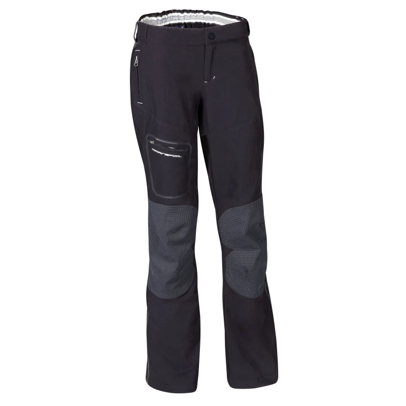 Tessuto idrorepellente ed antimacchi con rinforzi, resistente ai graffi su sedere e ginocchia, elastico per offrire una grande libertà di movimento, flessibilità a livello del ginocchio grazie al taglio 3D.