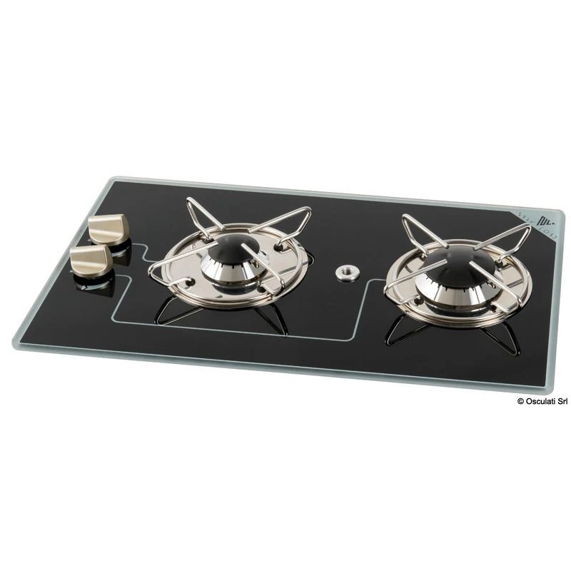 Piano cottura Osculati. Ha un sistema di sicurezza a termocoppia. Questo piano cottura ha due bruciatori.