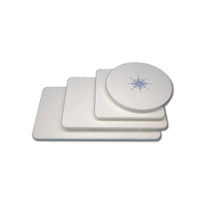 La sua finitura pulita con un laminato bianco e un motivo di rosa dei venti al centro del tavolo si abbinerà perfettamente alla tua barca.