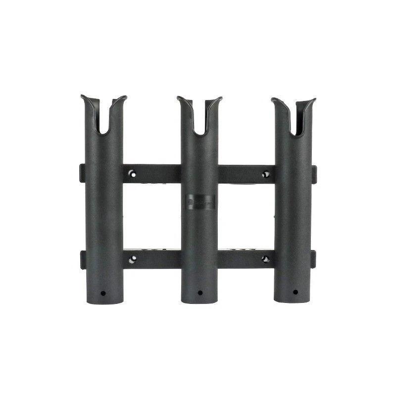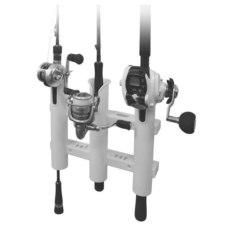 Portapacchi fisso che può ospitare 3 canne da pesca, con tacche per mulinelli.