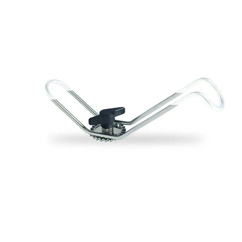 Portacanna in acciaio inox che permette una rotazione di 360 °, una volta che la posizione ideale è sufficiente bloccarlo in modo semplice e veloce grazie alla vite e alla rondella dentellata, stesso principio per sbloccarlo e cambiare posizione.