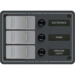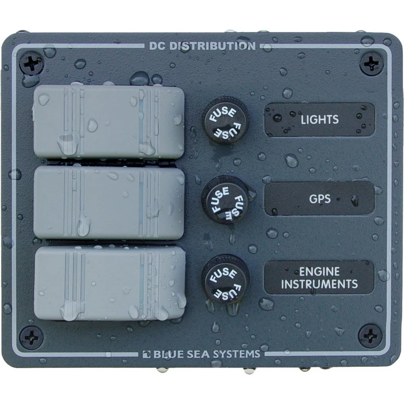 Quadro elettrico con 3 interruttori di Blue Sea Systems impermeabile IP66.
