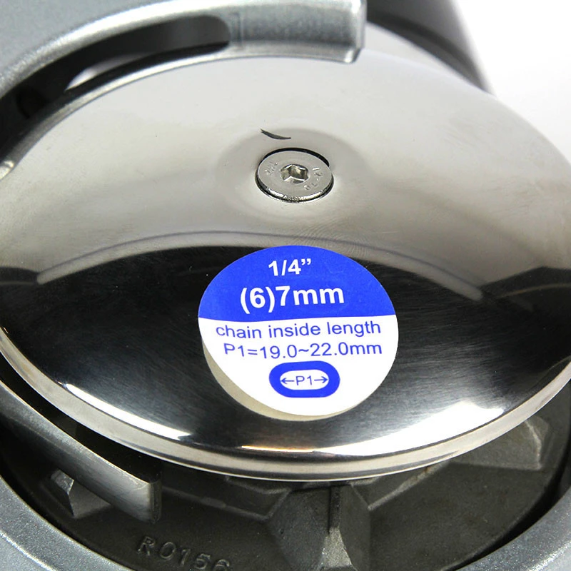 - Alluminio 700W o 1100W con campana con barbotin per catena da Ø 8 mm (DIN e ISO).