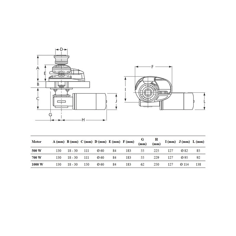 Caratteristiche del motore venduto con il salpa ancore X1 700W
