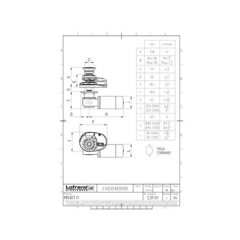 Caratteristiche tecniche del salpa ancore elettrico Lofrans’ X1 700W senza campana:
