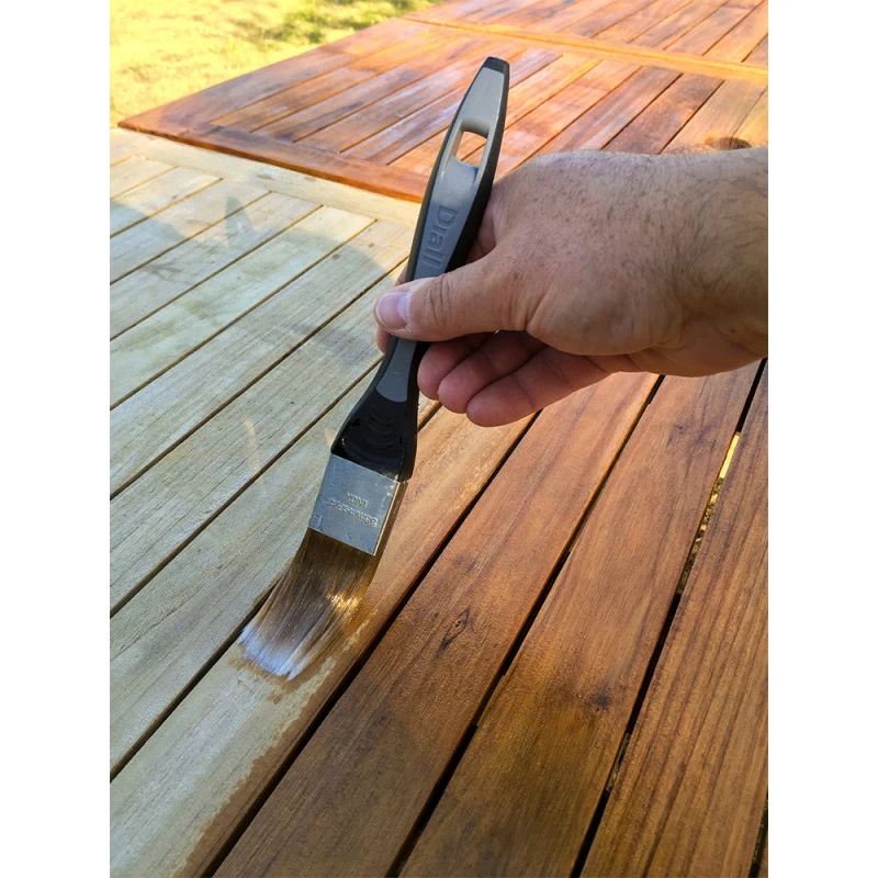 - Una volta che il legno è ben saturo, spazzolare o asportare sempre il prodotto in eccesso per evitare tracce di lucido durante l’asciugatura