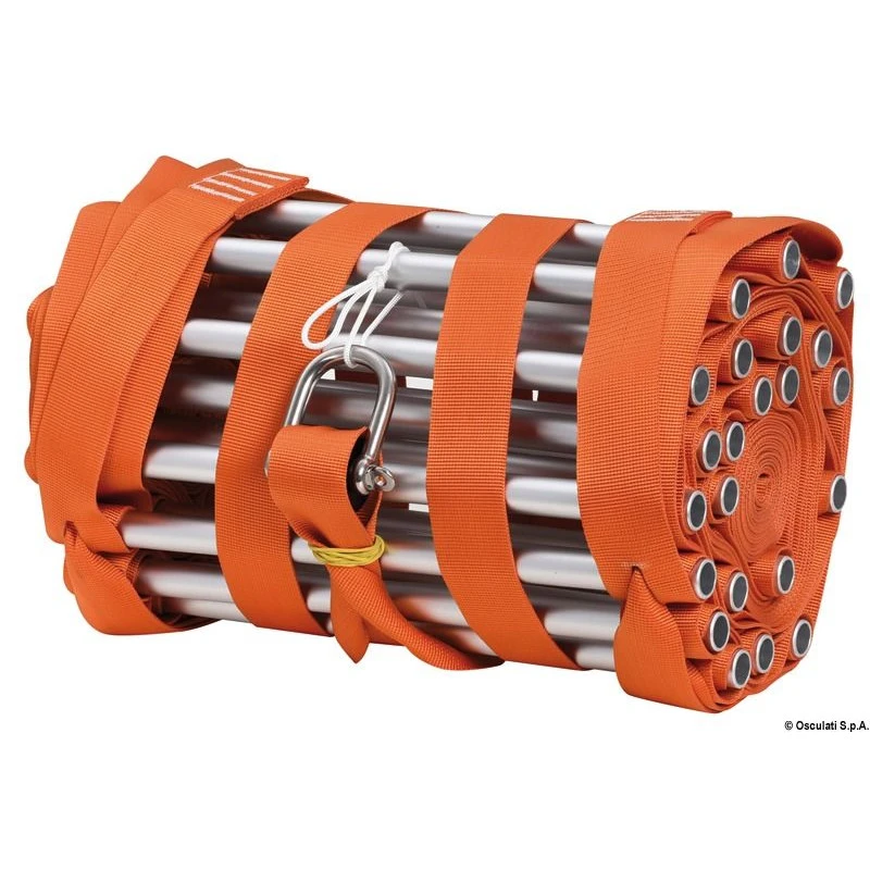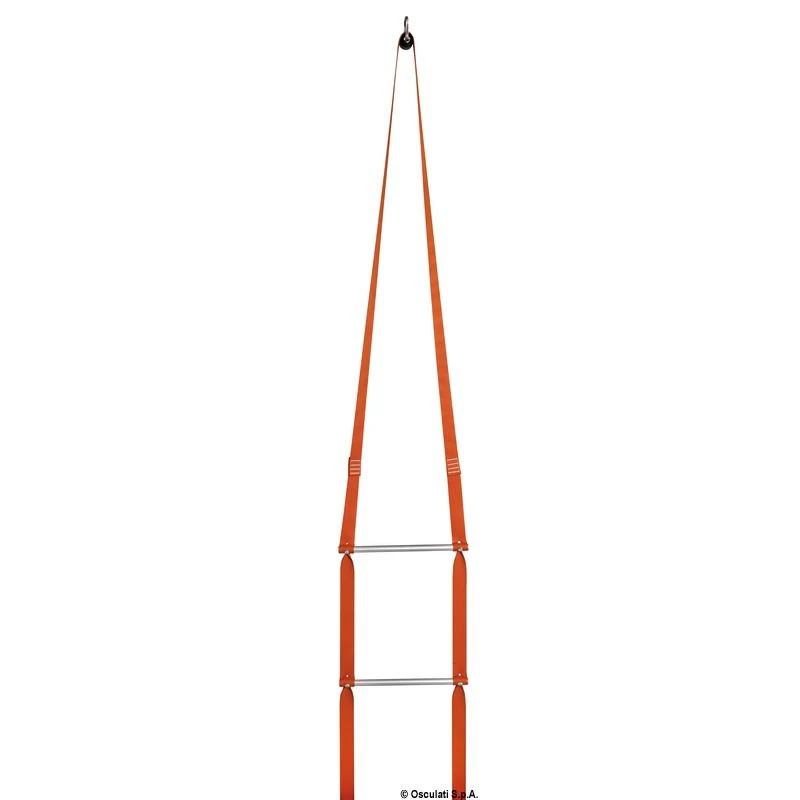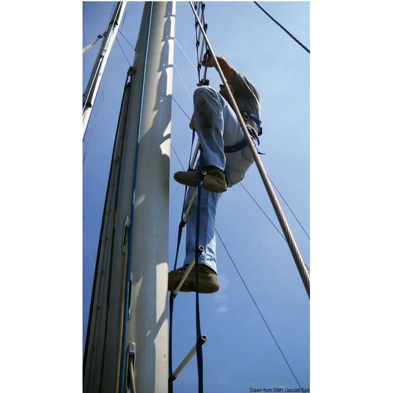 Questa scala anti-torsione è realizzata in nastro tessile e gradini in alluminio ed è dotata di registro antivibrazioni.