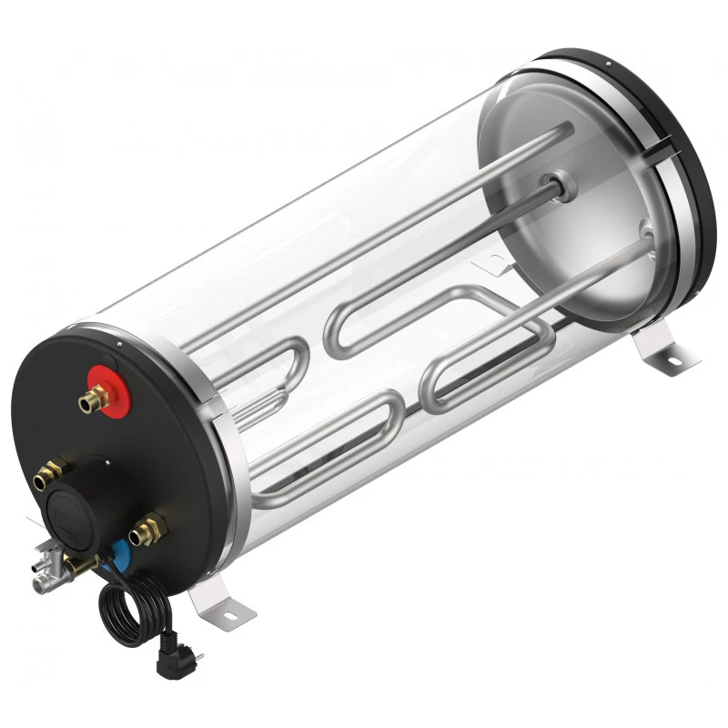 Questa tecnologia permette di riscaldare l’acqua dal motore (ma anche grazie a 220V in banchina o in mare su un convertitore).