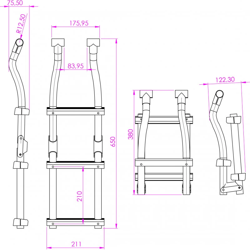 Scaletta in acciaio inox 3 scalini da installare sotto una plancetta.