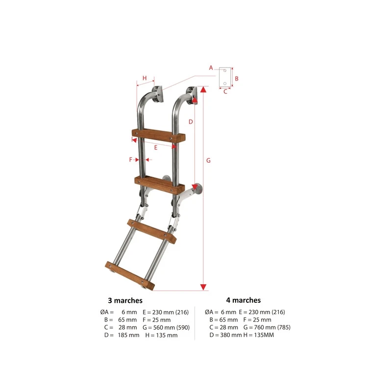 Scaletta in acciaio inox e legno da installare sullo specchio di poppa.