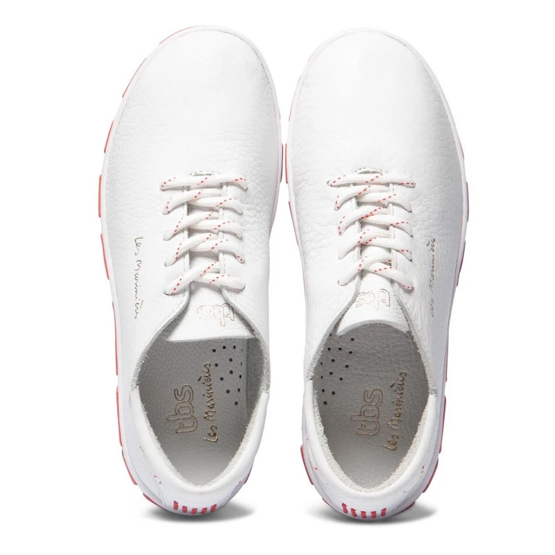 Le scarpe da tennis Jazaru da donna di TBS sono il modello iconico della marca! La tomaia in pelle bianca combinata con una suola rossa ti offrirà una scarpa versatile e colorata, perfetta per la stagione estiva. La sua pelle molto morbida vi garantirà un comfort ottimale.