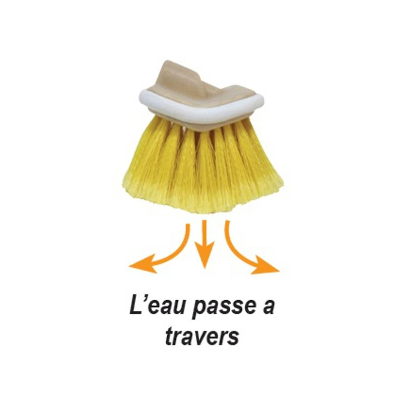 Fabbricata in robusto polipropilene che assicura una maggiore resistenza al sole e al sale rispetto alle tradizionali spazzole in legno, utilizzando setole in PVC lunghe 6,5cm. Infine il bordo antiurto in silicone protegge la vostra barca durante la pulizia.