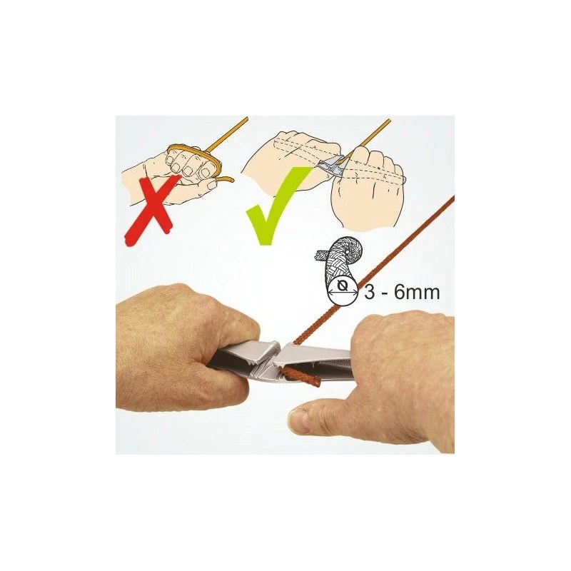 Adatto a cime dai 2 ai 6mm. LLo strozzascotte si utilizza per tesare o bordare piccole cime a mano. Lo strozzascotte permette di decuplicare la forza senza ferirsi le dita.