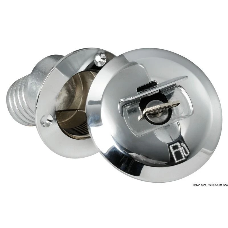Questotappo carburante inclinato è un sistema di apertura speciale a chiave per una maggiore sicurezza. E’ ideato in modo che il tappo copra interamente la piastrina avvitata, migliorando l’impermeabilità . L’inclinazione a 30° è utile quando il piano di lavoro è inclinato.
