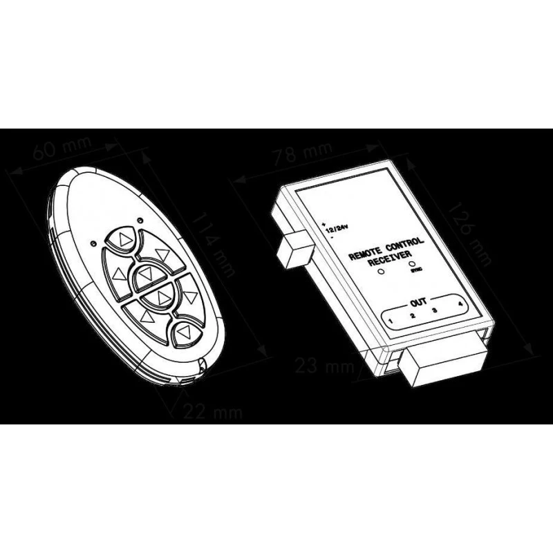- Ogni ricevitore può trasmettere 4 canali (12/24 V – 2 A)