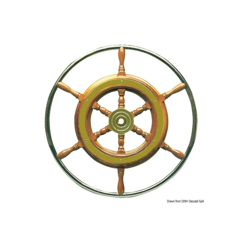 Questa barra per ruote ha 6 raggi e una fascia in ottone cromato. Il mozzo è anch’esso in ottone cromato e la barra è decorata con 8 mani di vernice PU (poliuretano). Le aste sono incollate per una maggiore resistenza. Il bordo esterno in acciaio inossidabile è privo di viti.