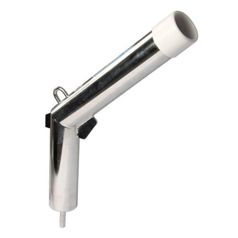 La staffa in acciaio inox è compatibile con la base ad incasso con tacche (riferimento: 20002898) per il montaggio completo di un portacanna o portapalo orientabile e inclinato di 135 °.