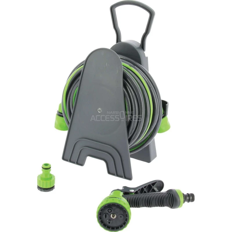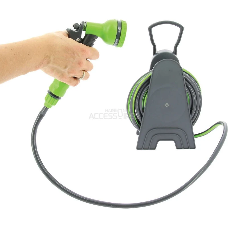 Tubo dell’acqua con avvolgitore della Optima. Ha una maniglia per facilitarne lo spostamento o per appenderlo a una parete. Molto compatto si può spostare con esso ovunque.