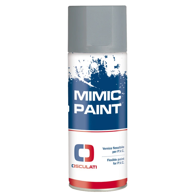 Vernice spray MIMIC PAINT è una vernice flessibile a base di PVC, adatta per il rifacimento di gommoni in PVC o neoprene, parabordi, cuscini in ecopelle e tutte le superfici morbide.