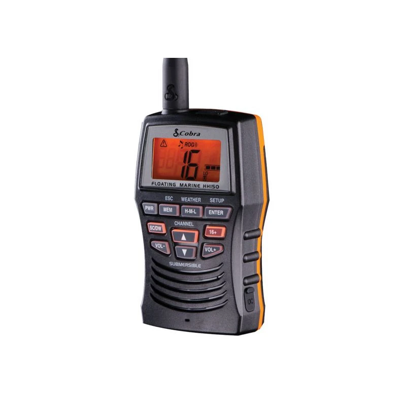 Il VHF Cobra H150 è un VHF marino portatile compatto e robusto. È ideale per i diportisti o come VHF di riserva su imbarcazioni più grandi. Questa radio da 3 watt offre ottime prestazioni e dimensioni contenute. La potenza di trasmissione di 0,5/1/3 watt riduce al minimo le dimensioni del VHF e aumenta la durata della batteria. La sicurezza è quindi assicurata.