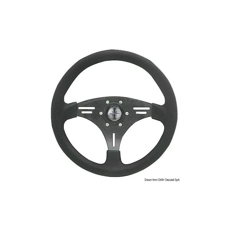 Il volante Manta a 3 razze ha una struttura in alluminio anodizzato e una corona in polimetano morbido.