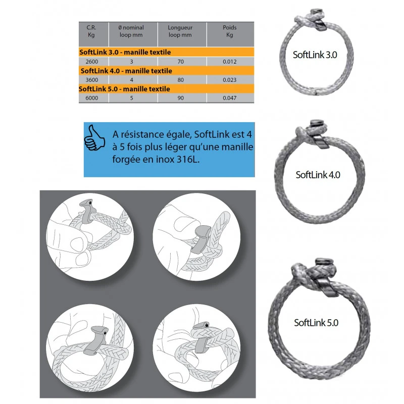 - Con uguale resistenza, SoftLink è dalle 4 alle 5 volte più leggero di un grillo realizzato in acciaio inox 316L.