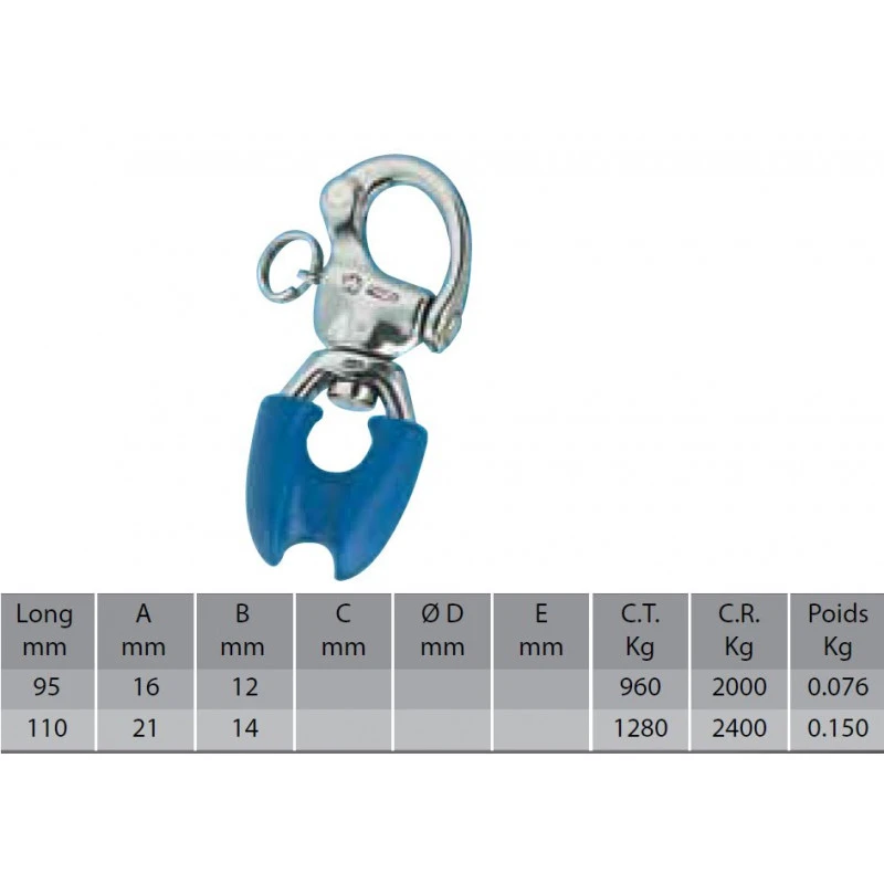 Caratteristiche del Moschettone di drizza a occhio con girella e capocorda WICHARD :
