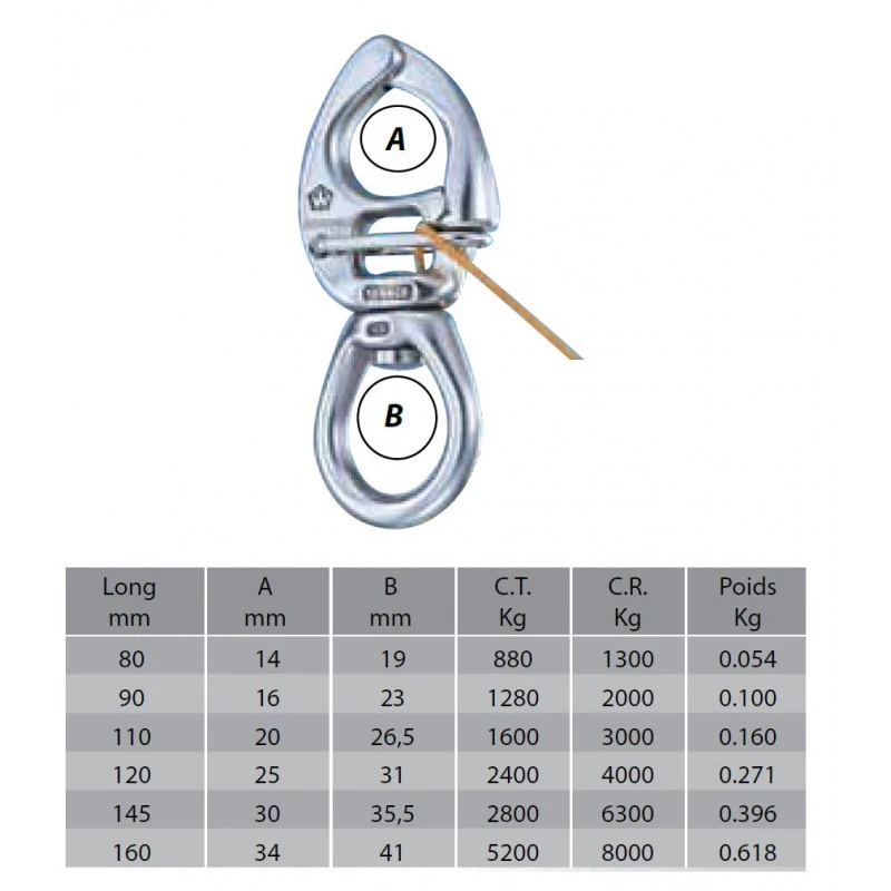 Caratteristiche del Moschettone in acciaio inox HR a grande occhio ad apertura rapida WICHARD :